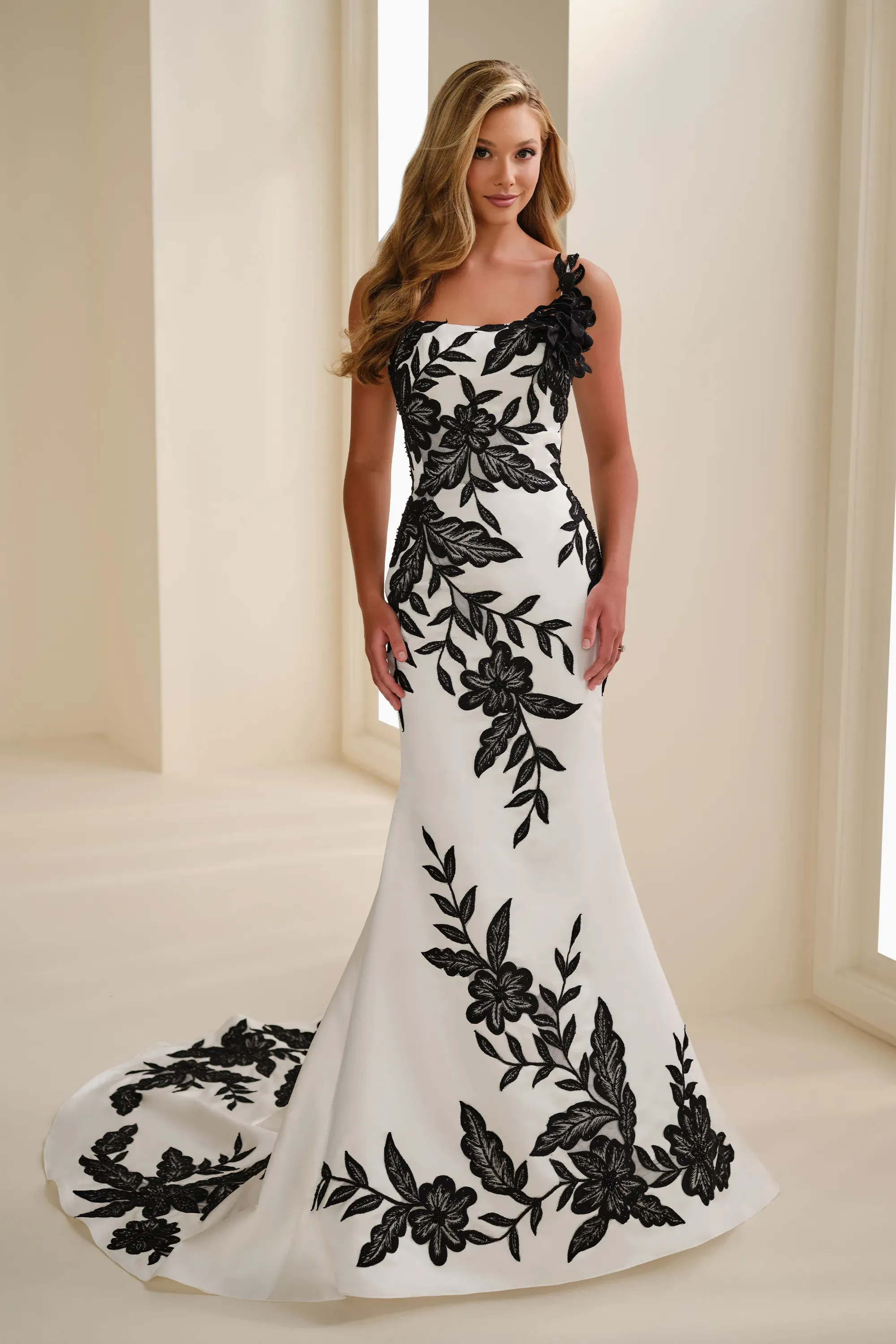 Fabric:Beading, Lace applique, Satin, Sequin, Three-dimensional Lace flowers
